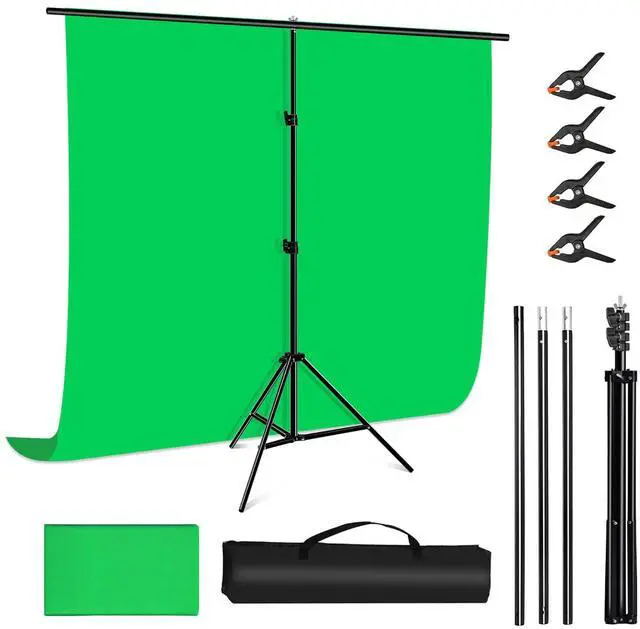 Green Screen Backdrop with T shape Stand Kit, 6.5X6.5ft Portable Green Screen Stand for Streaming Video Zoom.