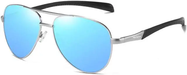 Avialas Bruno sunglasses, polarized aviator style, collection design, youthful and attractive style, comfortable and delicate metal frame with UV400 protection and anti-reflective technology. See the beauty of the world around you with Avialas sunglasses. Men's sunglasses model Frame style Aviator Frame material Metal Frame color Polished Silver Lenses color Light Blue Dimensions Front Frame 14 cm x Height 5.2 cm x Arms 14 cm Included accessories Case and cleaning cloth Features Polarized Lens Anti-reflection technology reduces glare and eye strain, for sharp vision and great contrast. UV400 Protection Lenses give total protection from UV rays.