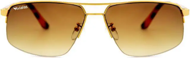 Avialas Mathis sunglasses, rectangular design for men, elegant collection model, unique luxury piece, metal frame and polarized lenses. It will adapt to any shape or size of face. Add more comfort and UV 400 protection to your look. See the beauty of the world around you with Avialas sunglasses. Men's sunglasses model Frame style Rectangular / Wrap Frame material Metal Frame color Polished Gold Lenses color Brown Dimensions Front Frame 13.5 cm x Height 5 cm x Arms 14 cm Included accessories Case and cleaning cloth Features Polarized Lens Anti-reflection technology reduces glare and eye strain, for sharp vision and great contrast.
