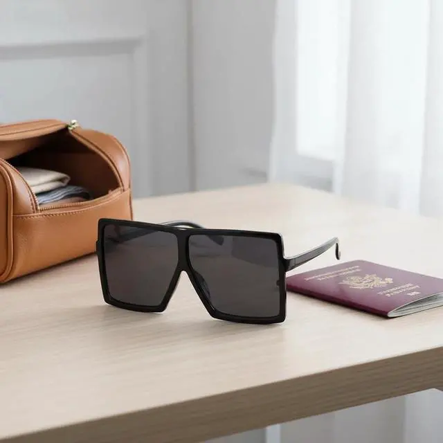 • Trendy Oversized Design: Bold, oversized black frames for a fashionable statement.