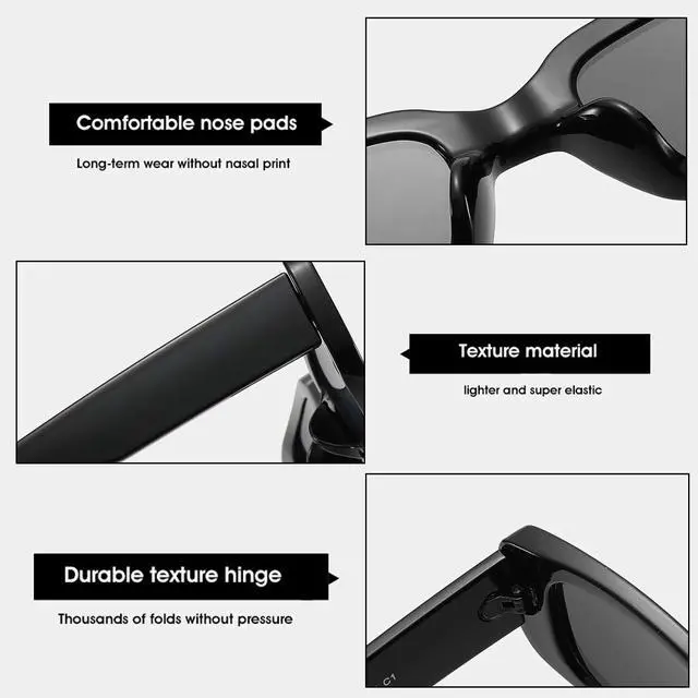 VINTAGE DESIGN - Not only is the simple and compact design makes thick frame looks very delicately,but also the rectangle shape frame makes the overall look of the sunglasses more retro.
