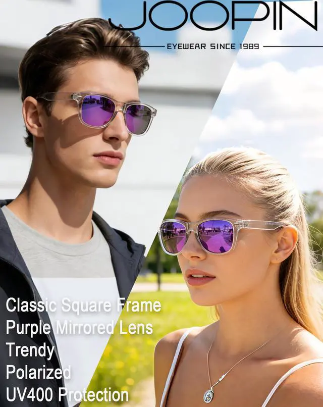 Joopin Clear Frame Mirrored Purple Square Sunglasses - Timeless Style & Superior Eye Protection