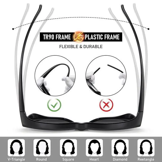 - Premium TAC 1.1MM lenses & durable TR90 flexible frame