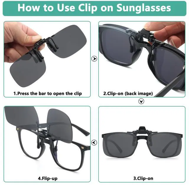 - Long feet to make sure these clip on sunglasses can fit your frames snugly and securely