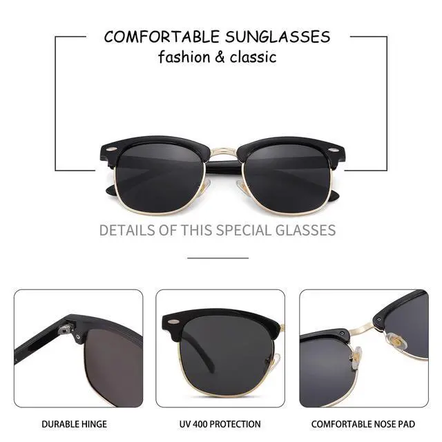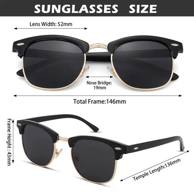 Semi-Rimless SunglassesUnisex semi-rimless style is suitable for any face shapes, and you'll be looked cool by wearing classic semi-rimless sunglasses. Besides, these sunglasses can be used in many outdoor activities, such as taking selfies, cycling, driving, shopping, traveling and hiking. It;s a perfect choice for daily wear all year around.