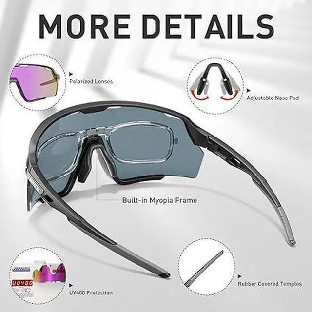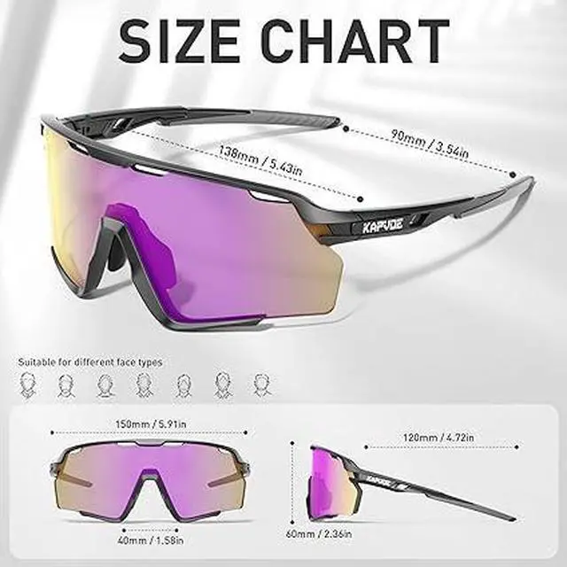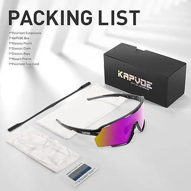 HIGH-QUALITY TR90 FRAMESThese frames are made from durable TR90 material, which is highly impact and bending-resistant and will not crack or break easily. Due to the flexibility and memory properties of the frame, KAPVOE cycling sunglasses can adapt to different face shapes and provide a better fit. Include a myopia frame in the sports glasses package, convenient for you to configure glasses.