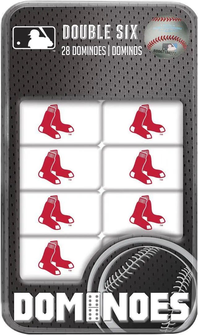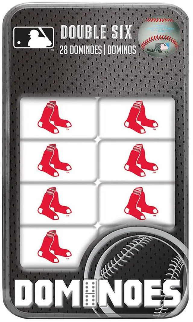 Officially licensed, MasterPieces MLB Boston Red Sox dominoes are perfect for any sports fan! This Double-Sixes Boston Red Sox Dominoes Set comes in a collectible tin box and includes 28 resin dominoes with a team logo printed on the back of each one. Dominoes Instructions are also included. This Sports Dominoes Set is perfect for all sports fans, ages 6 and up! Bring a little bit of pride home with you by purchasing this unique Dominoes Set!