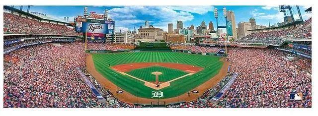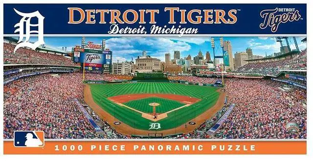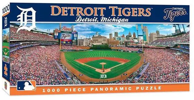 This MasterPieces MLB 1000pc 13" x 39" Panoramic Detroit Tigers Puzzle features the view from behind home plate of the Detroit Tigers' Comerica Park with such incredible detail that it's common for you to find yourself as part of the photograph! To reduce its impact on our environment, the chipboard used in this puzzle is made of 100% recycled material.