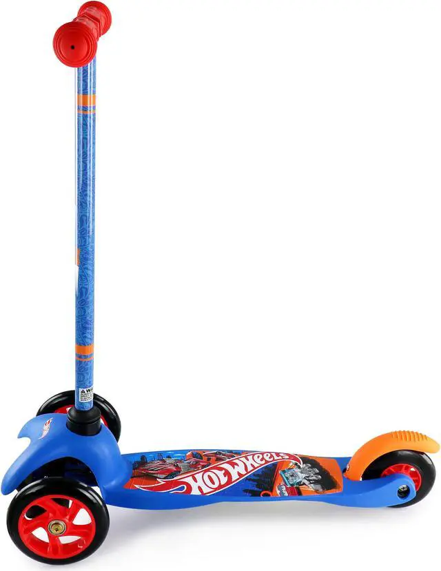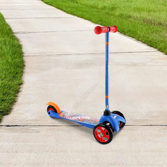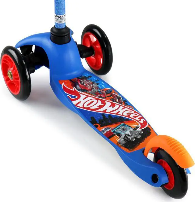 Create long-lasting memories with the Hot Wheels Tilt and Turn 3 Wheel Scooter. The scooter is designed for children ages three to five to begin developing their motor skills as well as strength and coordination. The three-wheel design helps your child balance easily with a simple tilt-and-turn steering system. The deck is wide and sturdy and features a rear foot brake so they can build up their confidence and you can have ease of mind as they explore the world.