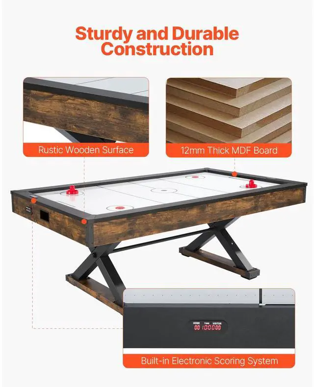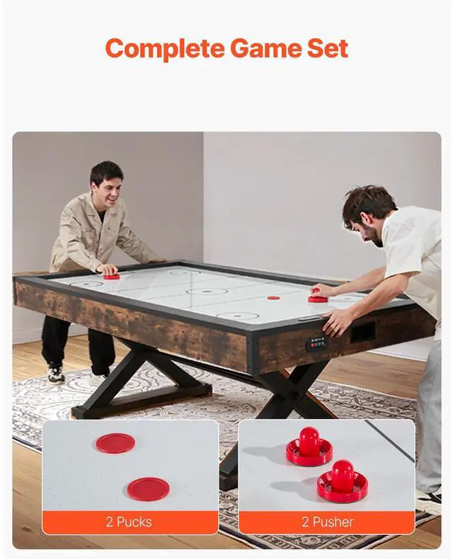 84" Air Hockey Table, Indoor Arcade Table Gaming Set with 2 Pushers, 2 Pucks, Electronic Scorer, X-shaped Legs & High-powered Blower, Air Powered Hockey Game Table for Family Game Room Office