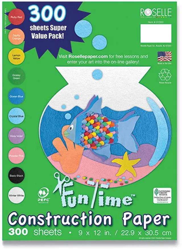 SunWorks construction Paper, 10 Assorted colors, 9" x 12", 300 Sheets