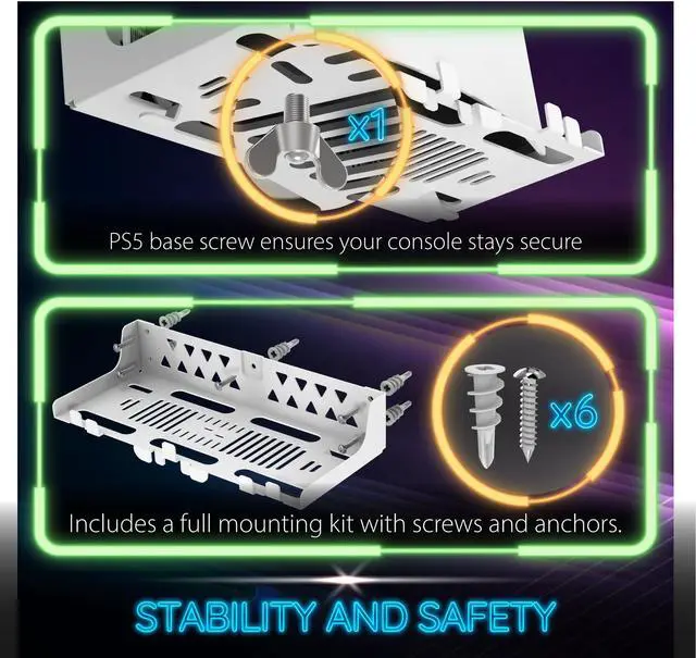 Our PS5 wall mount is built with metal to ensure durability and ensuring a solid base for your PS5 to be securely mounted. Other wall mounts may be built with non-metallic materials, which may not be as secure in the long run and may be prone to breaking.