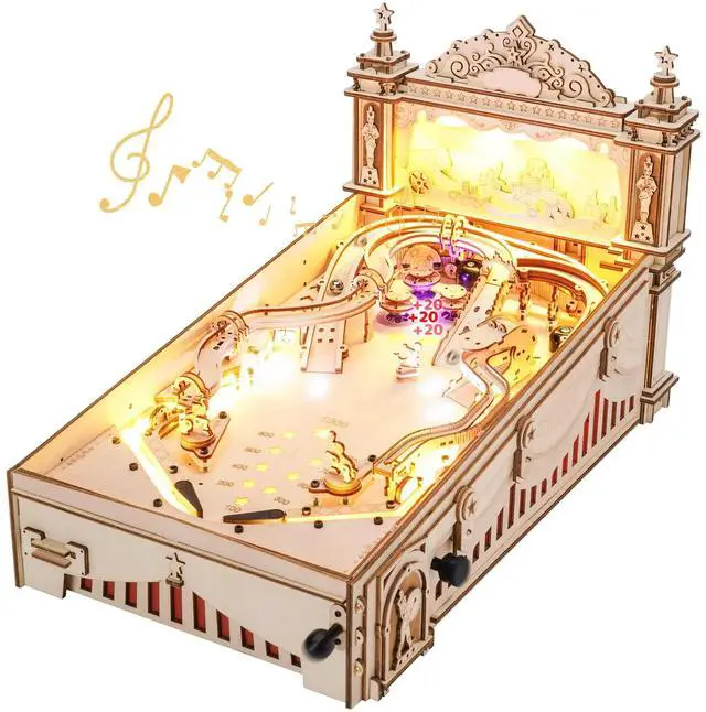 ROKR 3D Wooden Puzzle 3D Pinball Machine Mechanical Model,Diy Retro Games Marble Run,Christmas Birthday Gift for Adult 14+ Kid,482 Pcs