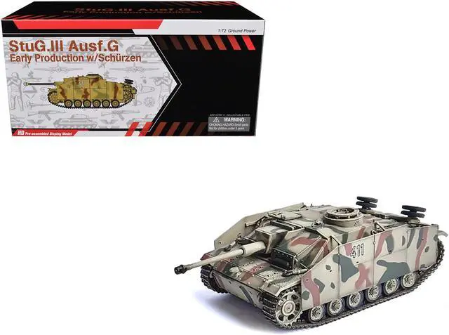 Brand new 1/72 scale plastic model of Germany StuG. III Ausf. G Early Production Tank with Schurzen #411 "Panzer Abteilung 115, Italy" (1943) "NEO Dragon Armor" Series plastic model by Dragon Models.