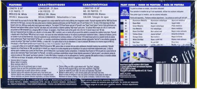Brand new plastic model kit of 1970 Plymouth Road Runner (Level 4) 1/24 plastic model kit by Revell.