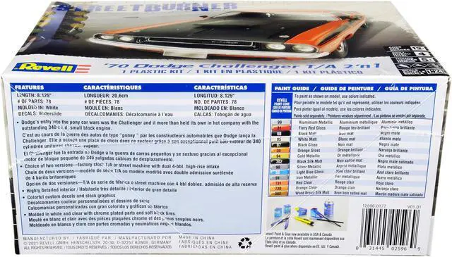 Brand new plastic model kit of 1970 Dodge Challenger T/A "Streetburner" 2-in-1 Kit (Level 4) 1/24 plastic model kit by Revell.