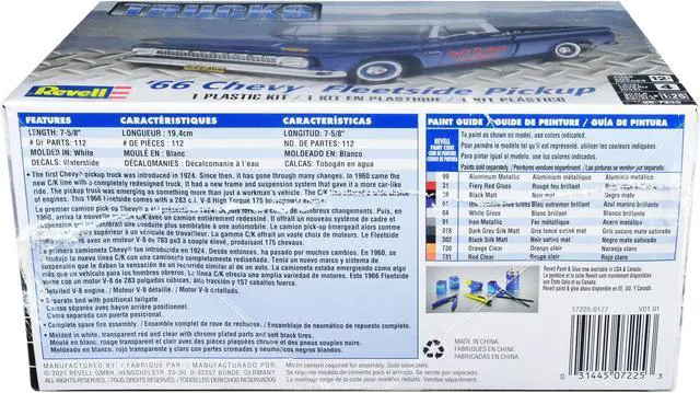 Brand new plastic model kit of 1966 Chevrolet Fleetside Pickup Truck (Level 4) 1/25 plastic model kit by Revell.