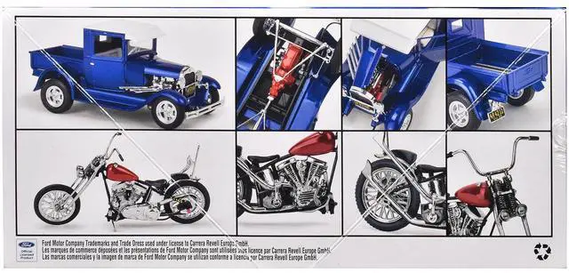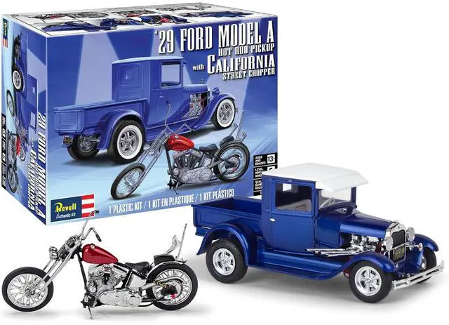 Brand new plastic model kit of 1929 Ford Model A Hot Rod Pickup Truck and California Street Chopper Motorcycle (Level 5) 1/25 plastic model kit by Revell.
