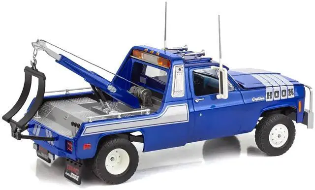 Detailed Captain Hook wrecker body includes a telescoping boom with a tow swing.