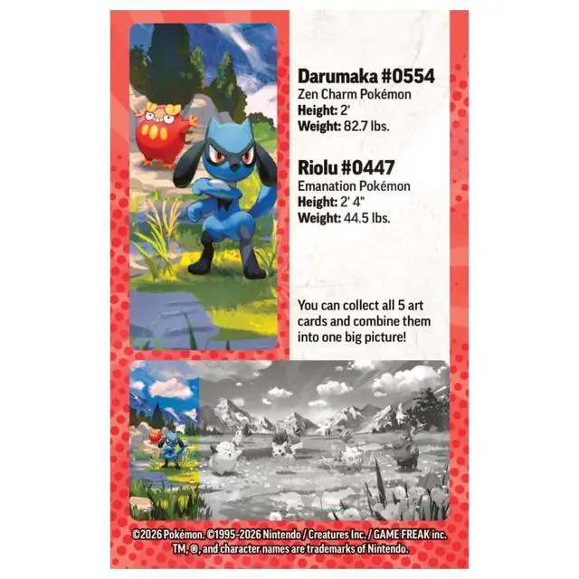 Your favorite Pokémon, perfectly sized to take anywhere! The Pokémon TCG: Mega Evolution Ascended Heroes Mini Tin featuring Riolu and Darumaka is a great addition to your collection. This Mini Tin includes two Mega Evolution Ascended Heroes booster packs, a sticker sheet, and a Pokémon art card that matches the tins artwork. Add this Ascended Heroes Mini Tin to your collection and enjoy Pokémon fun on the go!