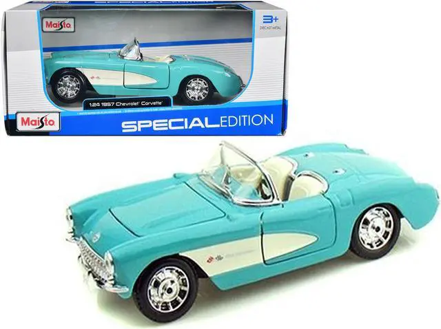 Brand new 1/24 scale diecast car model of 1957 Chevrolet Corvette Convertible Turquoise die cast model car by Maisto.