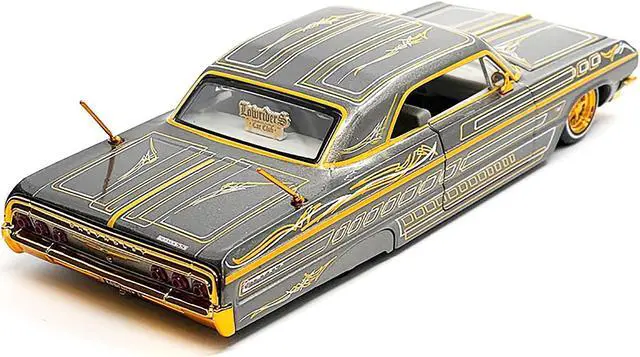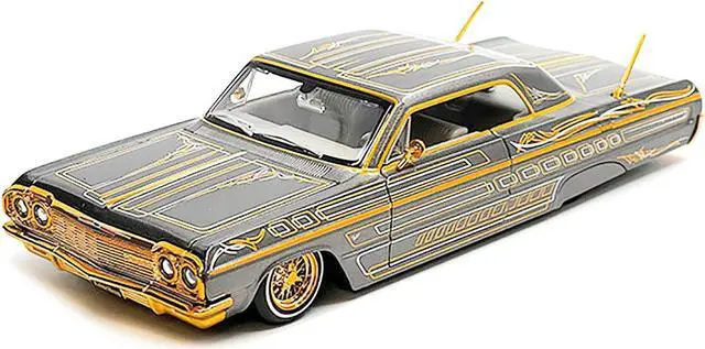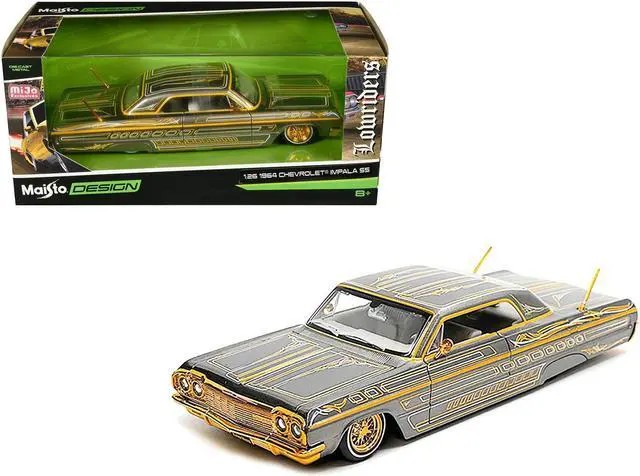 Brand new 1/26 scale diecast car model of 1964 Chevrolet Impala SS Lowrider Gray Metallic with Gold Graphics "Lowriders" "Maisto Design" Series die cast model car by Maisto.