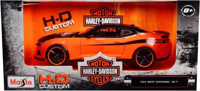 Brand new 1/24 scale diecast car model of 2017 Chevrolet Camaro ZL1 Orange and Black "Harley Davidson" "H-D Custom" Series die cast model car by Maisto.