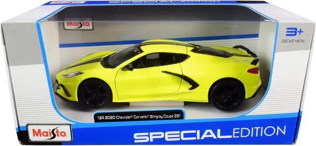 Brand new 1/24 scale diecast car model of 2020 Chevrolet Corvette Stingray Z51 Coupe Yellow with Black Stripes die cast model car by Maisto.