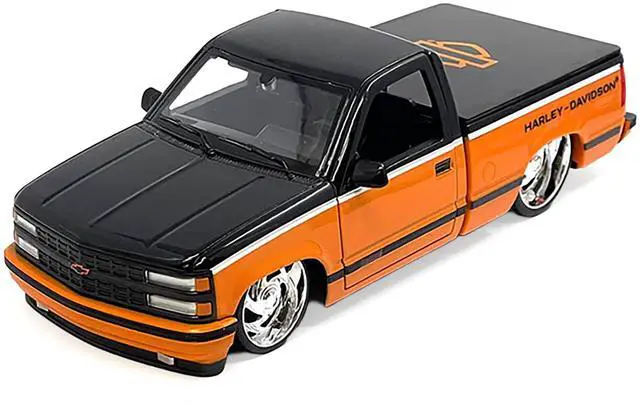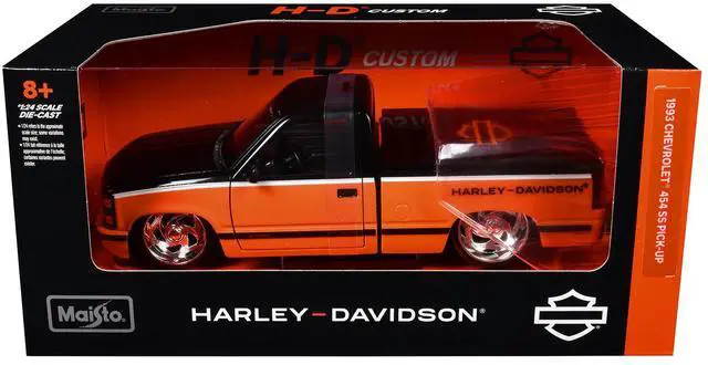 Brand new 1/24 scale diecast car model of 1993 Chevrolet 454 SS Pickup Truck "Harley Davidson" Black and Orange "H-D Custom" Series die cast model car by Maisto.