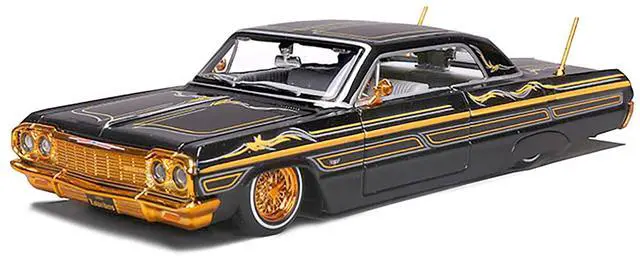 Brand new 1/26 scale die cast car model of 1964 Chevrolet Impala SS Lowrider Black Metallic with Gold Graphics and Gray Interior "Lowriders" "Maisto Design" Series die-cast model car by Maisto.