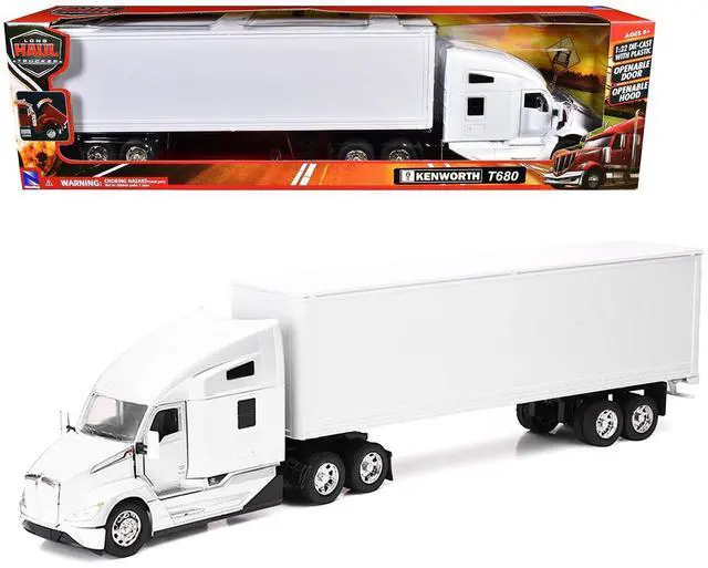 Brand new 1/32 scale diecast model of Kenworth T680 Truck White with Dry Van Trailer White "Long Haul Trucker" Series die cast model by New Ray.