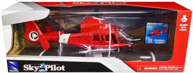 Brand new 1/48 scale diecast model of Eurocopter Dauphin HH-65C Helicopter Red "United States Coast Guard" "Sky Pilot" Series die cast model by New Ray.