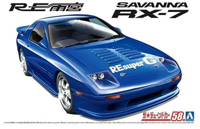 Aoshima brings you this 1/24 scale model kit to build the iconic 1989 Mazda RE AmemiyaFC3S Savanna RX-7.