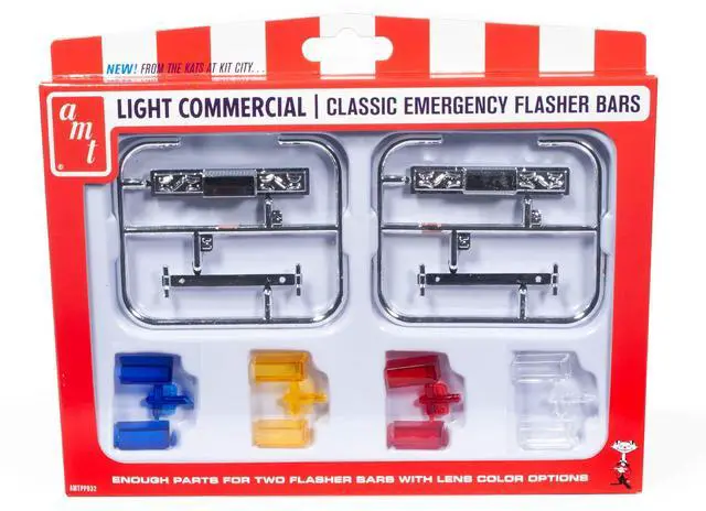 Brand new 1/25 scale plastic model kit of Light Commercial Classic Emergency Flasher Bars Set of 10 pieces (Skill 2) for 1/25 scale models by AMT.
