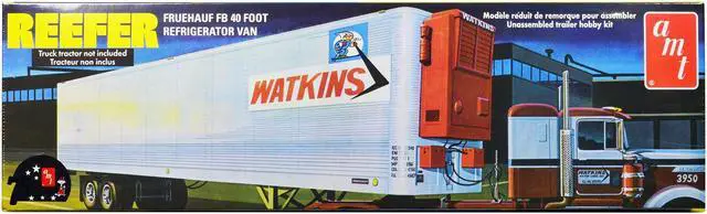 Brand new 1/25 scale plastic model kit of Fruehauf FB 40' Refrigerated Trailer "Watkins Motor Lines" (Skill 3) 1/25 plastic model kit by AMT.