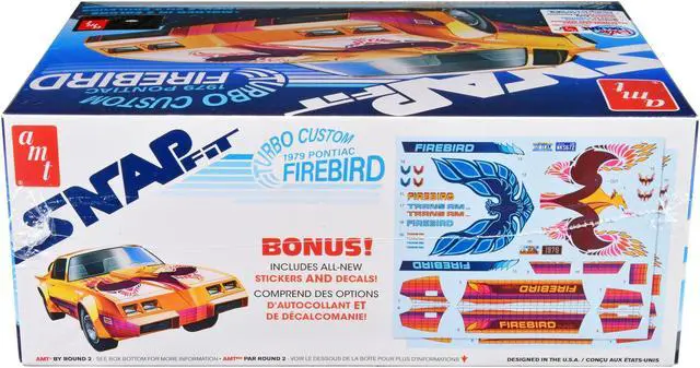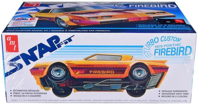 Brand new 1/25 scale plastic snap model kit of 1979 Pontiac Firebird "Turbo Custom" (Skill 1) 1/25 plastic snap model kit by AMT.