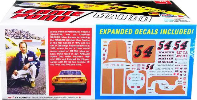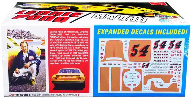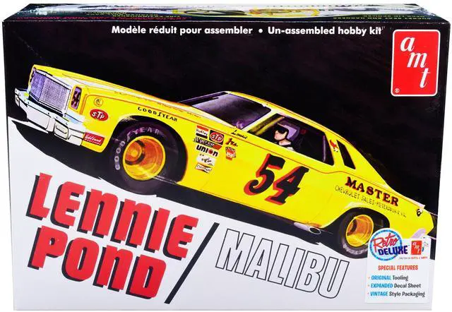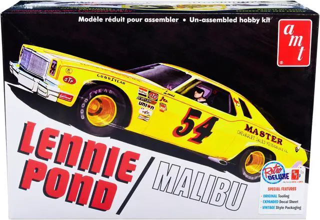 Brand new 1/25 scale plastic model kit of 1974 Chevrolet Malibu Stock Car #54 Lennie Pond (Skill 2) 1/25 plastic model kit by AMT.