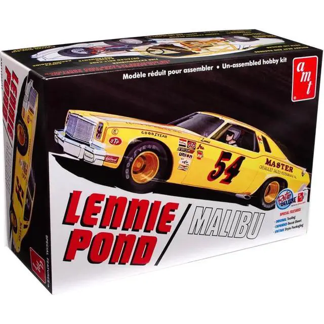 Brand new 1/25 scale plastic model kit of 1974 Chevrolet Malibu Stock Car #54 Lennie Pond (Skill 2) 1/25 plastic model kit by AMT.