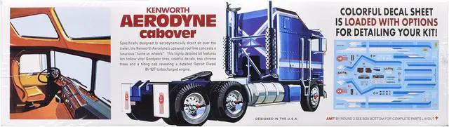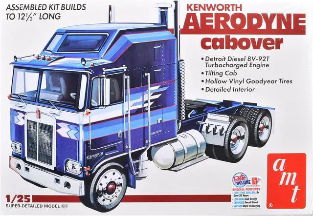 Brand new 1/25 scale plastic model kit of Kenworth Aerodyne Cabover Truck Tractor (Skill 3) 1/25 plastic model kit by AMT.