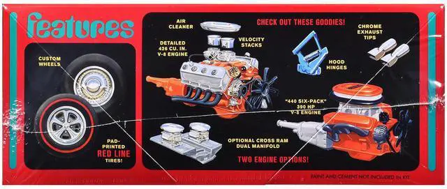 440 Six-Pack 390 HP V-8 engine with chrome exhaust tips.