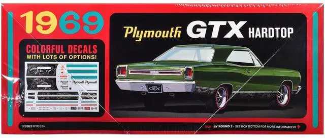 Brand new 1/25 scale plastic model kit of 1969 Plymouth GTX Hardtop (Skill 2) 1/25 plastic model kit by AMT.