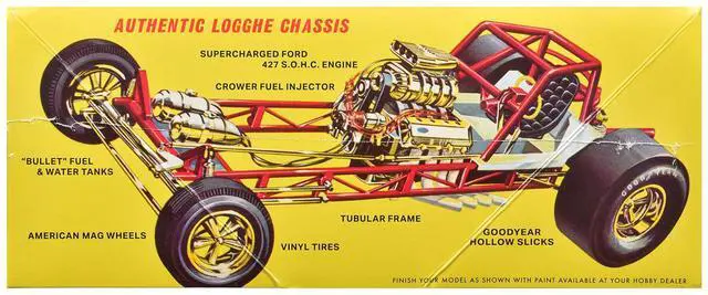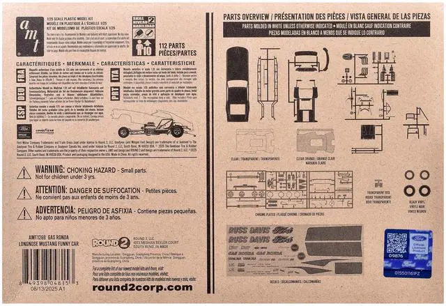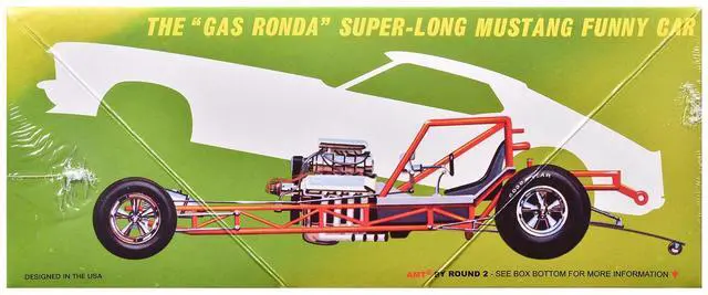 Brand new 1/25 scale plastic model kit of 1969 Ford Mustang Longnose Funny Car "Gas Ronda" (Skill 2) 1/25 plastic model kit by AMT.