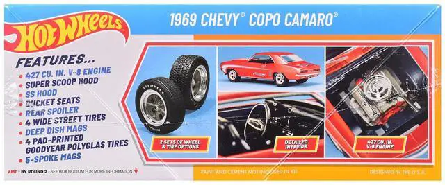 Brand new plastic model kit of 1969 Chevrolet COPO Camaro "Hot Wheels" (Skill 2) 1/25 plastic model kit by AMT.