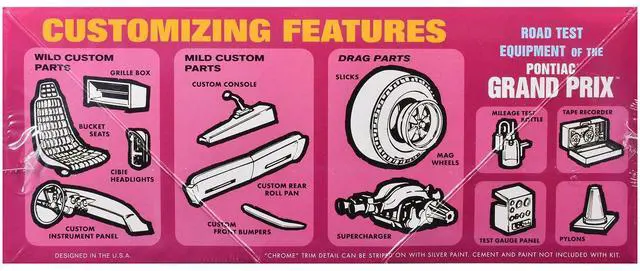 Brand new 1/25 scale plastic model kit of 1965 Pontiac Grand Prix Show 'N' Go (Skill 2) 1/25 plastic model kit by AMT.