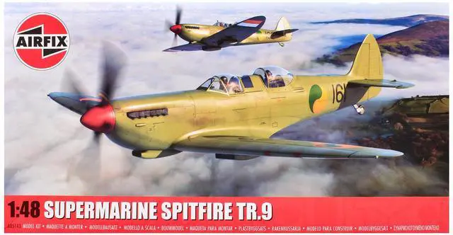 Brand new plastic model kit of Supermarine Spitfire Tr. 9 Fighter Aircraft with 2 Scheme Options (Level 2) 1/48 plastic model kit by Airfix.