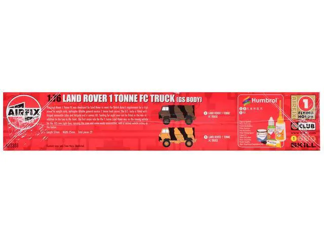Brand new plastic model kit of Land Rover 1 Tonne FC Truck (GS Body) with 3 Scheme Options (Level 1) 1/76 plastic model kit by Airfix.