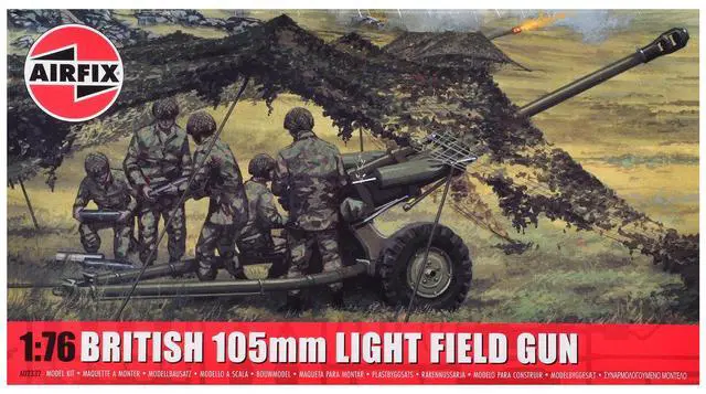 Brand new plastic model kit of British 105mm Light Field Gun with 3 Scheme Options (Level 1) 1/76 plastic model kit by Airfix.