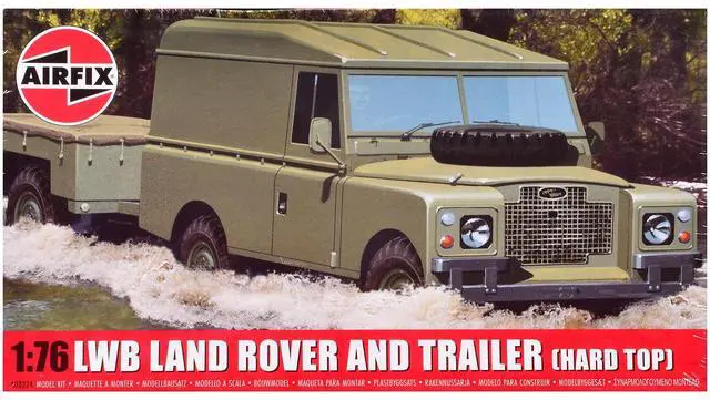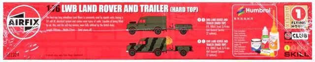Brand new plastic model kit of Land Rover LWB (Hard Top) Truck and Trailer with 2 Scheme Options (Level 1) 1/76 plastic model kit by Airfix.