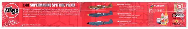Brand new plastic model kit of Supermarine Spitfire PR. XIX Fighter Aircraft with 3 Scheme Options (Level 2) 1/48 plastic model kit by Airfix.
