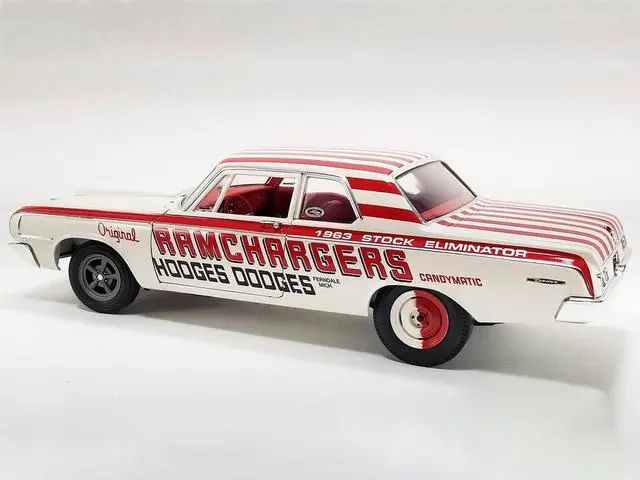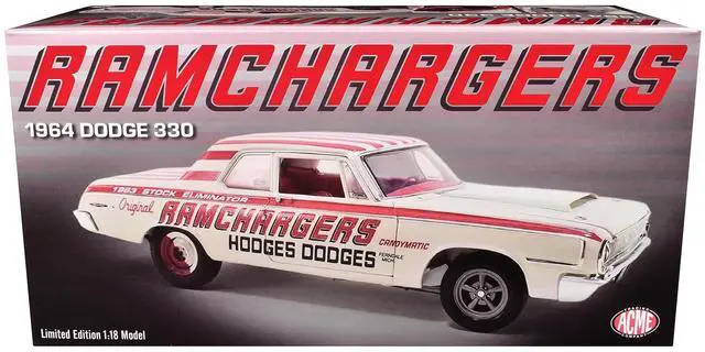 Brand new 1/18 scale diecast car model of 1964 Dodge 330 "Ramchargers" White with Red Graphics and Stripes Limited Edition to 504 pieces Worldwide die cast model car by ACME.